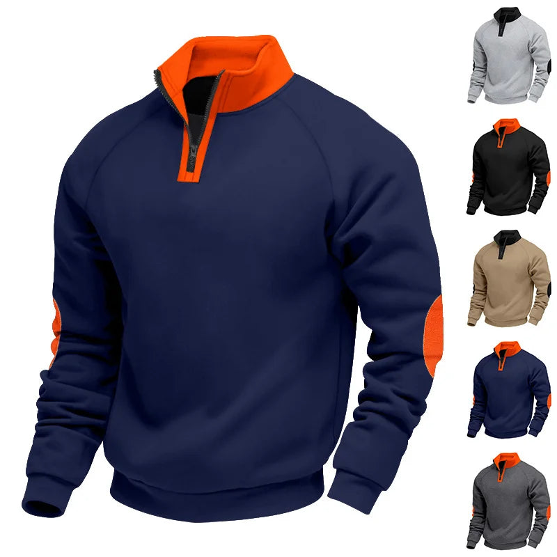 American New Color Matching Spring and Autumn Loose Casual Plus Velvet Heavy Stand Collar Pullover Long Sleeve Sweatshirt