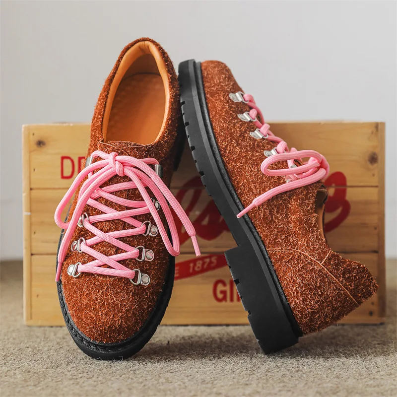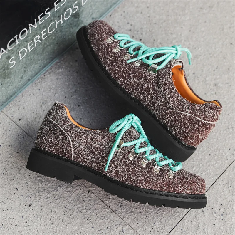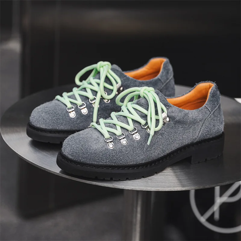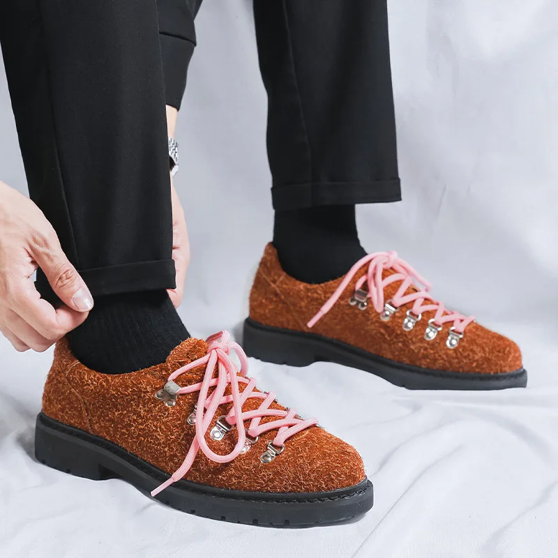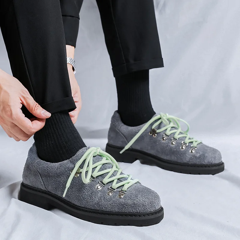Designer Personalized Niche Trendy Men's Casual Leather Shoes Cow Suede Mens British Style Colorful Shoelaces Derby Shoe