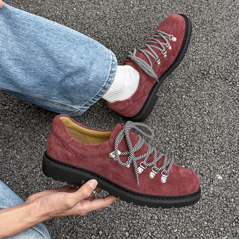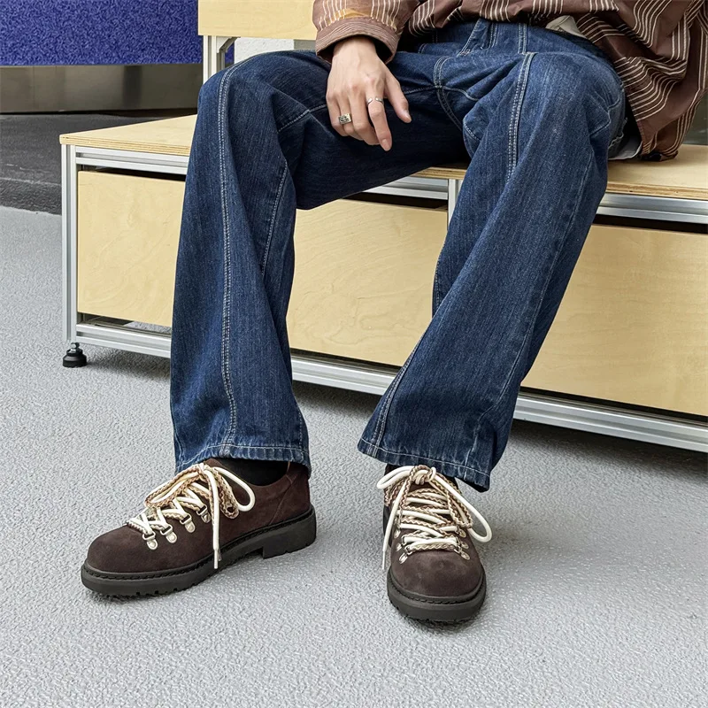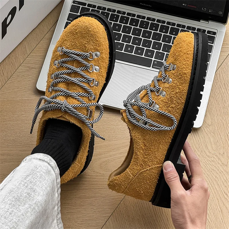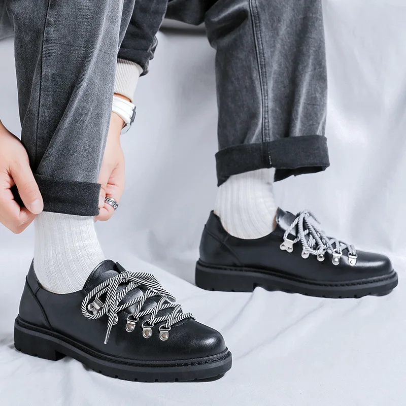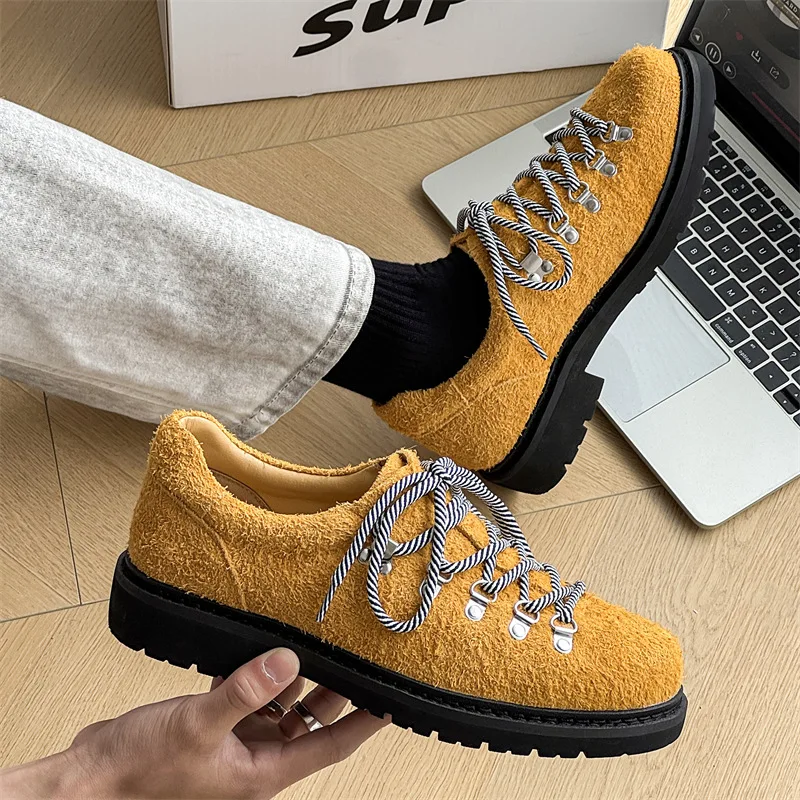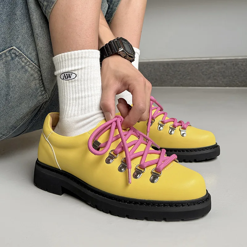 Designer Personalized Niche Trendy Men's Casual Leather Shoes Cow Suede Mens British Style Colorful Shoelaces Derby Shoe